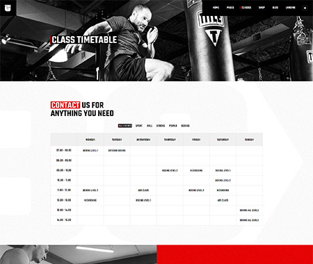 Comes with Timetable Responsive Schedule plugin bundled for free! Easily display a timetable schedule for all your boxing sessions, competitions & events.