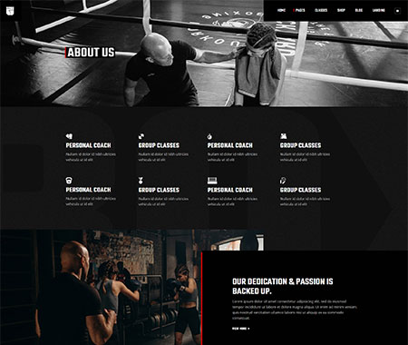 Knockout comes with a stunning set of predesigned website templates for all types of boxing schools, clubs, professional coaching and kick box training.